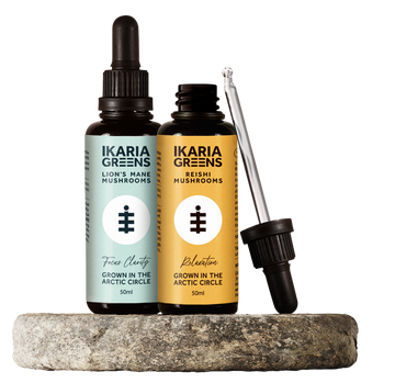 Cada compra incluye el tamaño seleccionado de extracto de reishi de Ikaria Greens, elaborado con ingredientes 100 % orgánicos y veganos provenientes de regiones árticas prístinas. Nuestros productos están diseñados para una biodisponibilidad óptima y no contienen gluten ni rellenos.