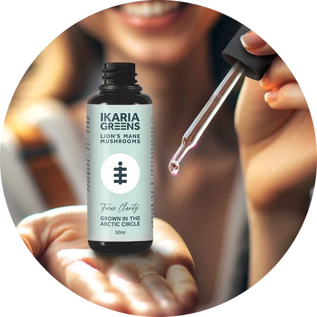 Cada compra incluye el tamaño seleccionado de extracto de melena de león de Ikaria Greens, elaborado con ingredientes 100 % orgánicos y veganos provenientes de la prístina región del Ártico. Nuestros productos están diseñados para una biodisponibilidad óptima y no contienen gluten ni rellenos.