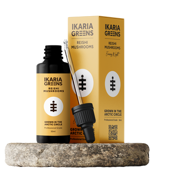 Experience the power of Reishi with Ikaria Greens Reishi Extract, designed to enhance your immune system, reduce stress, promote restorative sleep and overall well-being.